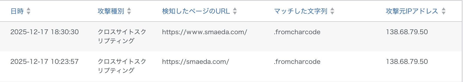 HOMENews 「クロスサイトスクリプティング」攻撃をブロックしました 2025年12月17日 News 8 Views 本日(12月17日)18:30に本日二度目の「クロスサイトスクリプティング」攻撃を受け、WAFがブロックしました。 10:23の攻撃と同じIPアドレスが使われています。午前中と同様に私のもう一つのブログも同様の攻撃を受けました。