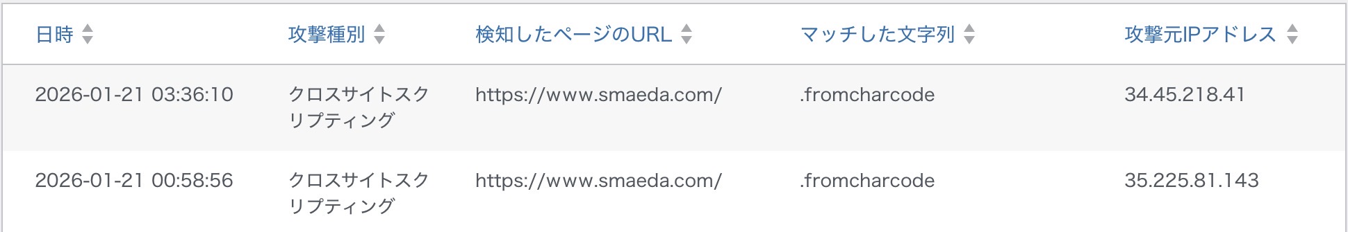 HOMENews 「クロスサイトスクリプティング」攻撃をブロックしました 2026年1月21日 News 51 Views 本日(2026年1月21日)早朝(00:58、03:36)に「クロスサイトスクリプティング」攻撃を受け、WAFがブロックしました。 IPアドレスはアメリカからのアクセスであるかのように偽装されています。昨日から続いている攻撃と同じもののようです。