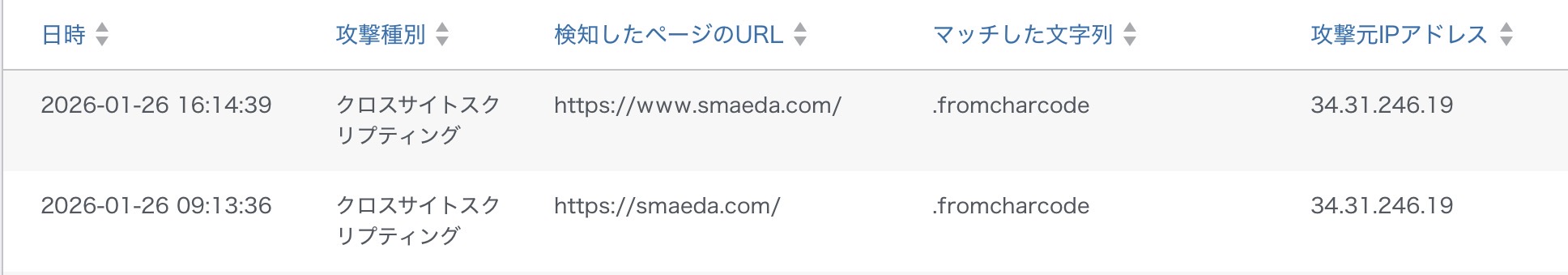 HOMENews 「クロスサイトスクリプティング」攻撃をブロックしました 2026年1月26日 News 42 Views 本日(2026年1月26日) 9:13、16:14に「クロスサイトスクリプティング」攻撃を受け、WAFがブロックしました。 連日の攻撃と同じもので、IPアドレスはアメリカからのアクセスであるかのように偽装されています。