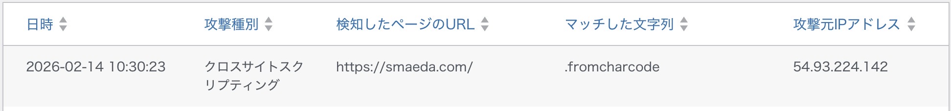 本日(2026年2月14日)10:30に「クロスサイトスクリプティング」攻撃を受け、WAFがブロックしました。