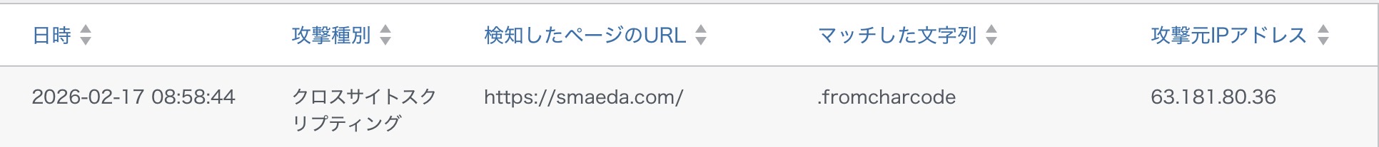 HOMENews 「クロスサイトスクリプティング」攻撃をブロックしました 2026年2月17日 News 7 Views 本日(2026年2月17日) 8:58、「クロスサイトスクリプティング」攻撃を受け、WAFがブロックしました。 IPアドレスはアメリカを指しており、昨年来続いている攻撃と全く同じものです。
